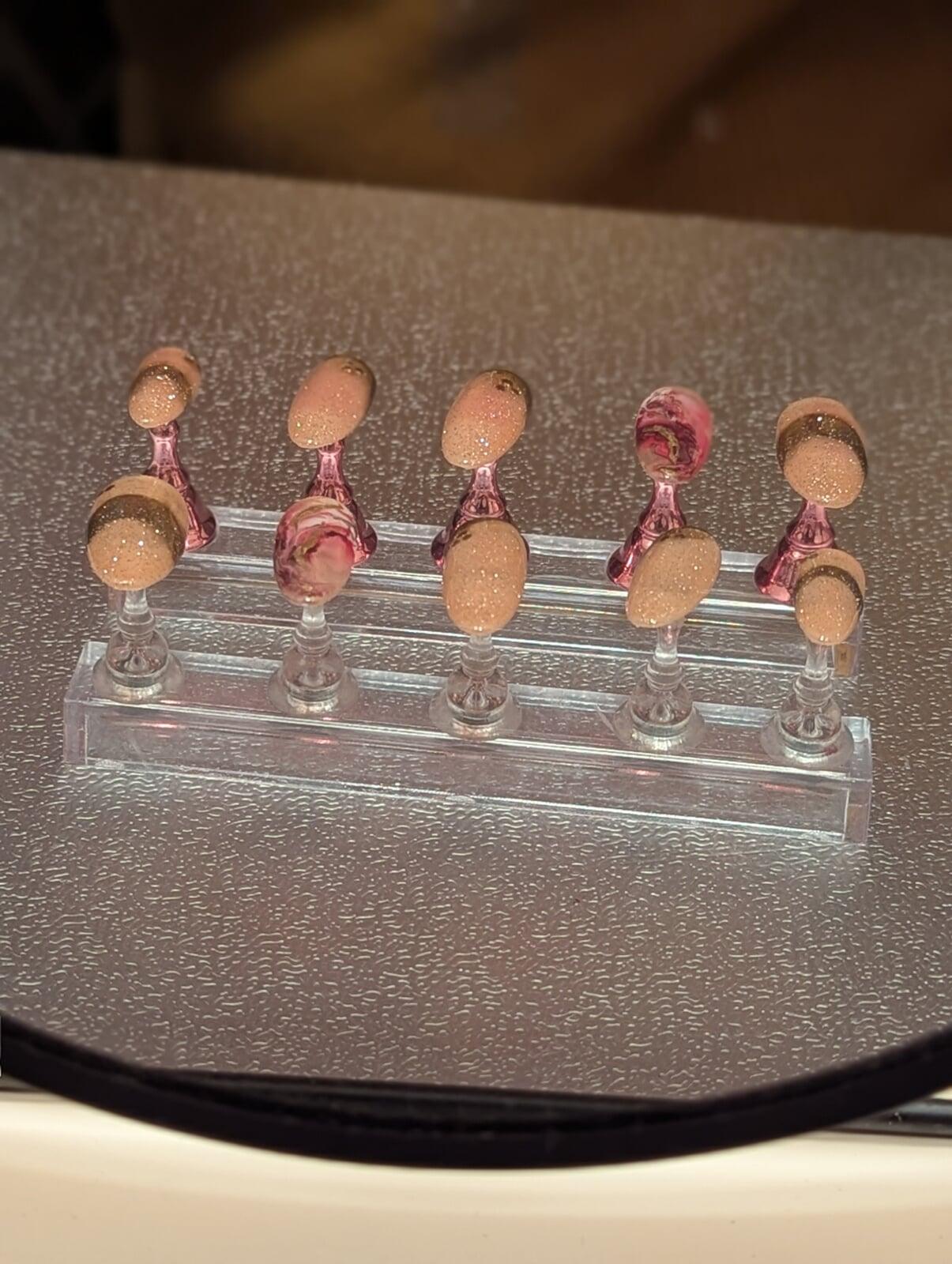 A typical client's nail size might be as follows, for instance: the thumb is around 17mm wide and suits a size 1. The middle finger measures about 15mm and suits a size 3, while the index finger is about 14mm and a size 4. The pinky finger is around 10mm wide and fits a size 8, while the ring finger is 13mm wide and fits a size 5.